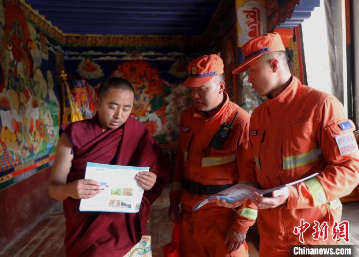 “景區(qū)內(nèi)的宗教寺廟木質結構比較多,周圍森林資源豐富,平時要注意用火安全,防止火災發(fā)生。”這是林芝市森林支隊消防員正在為德木寺景區(qū)工作人員和僧人宣傳森林消防安全常識。
