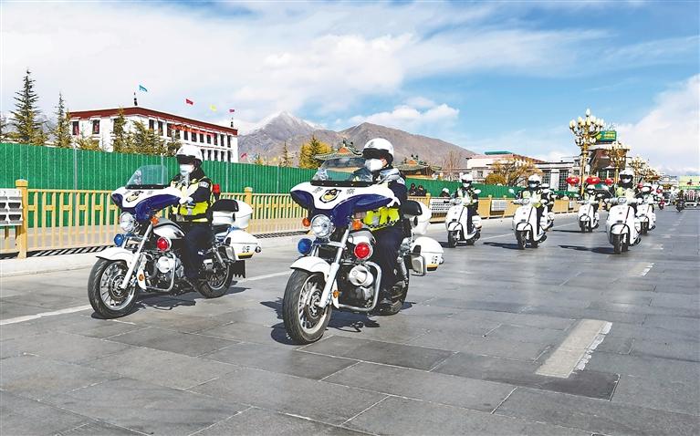 拉薩市公安局交警支隊(duì)城北大隊(duì)女子中隊(duì)交警颯爽英姿。唐斌 攝