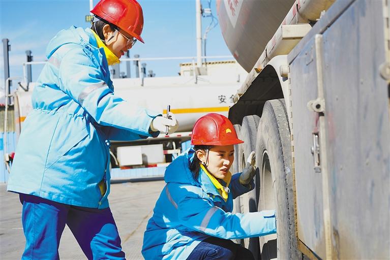 中國石油運(yùn)輸西藏分公司女員工在養(yǎng)護(hù)車輛。次仁平措 攝