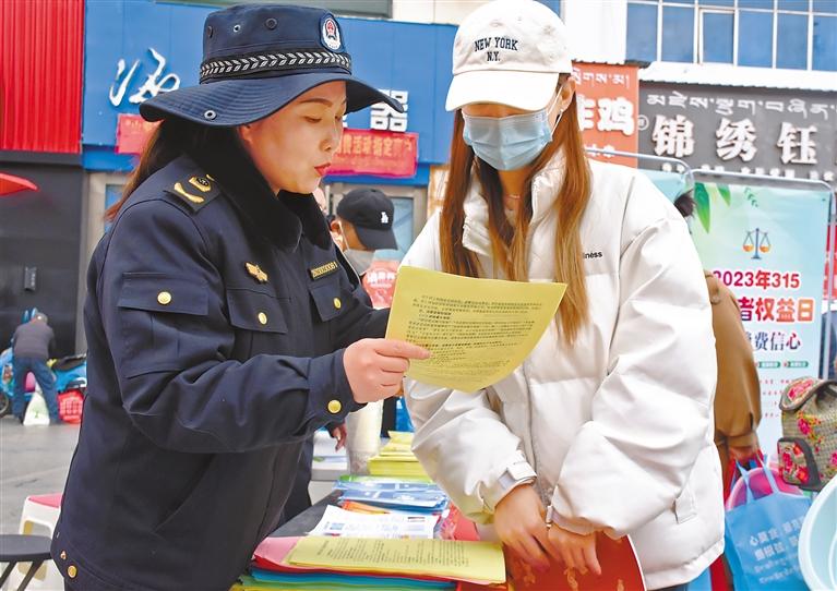 圖為今年“3·15”期間,山南市監(jiān)局工作人員向市民宣講消費(fèi)者權(quán)益保護(hù)知識(shí)。劉楓 攝