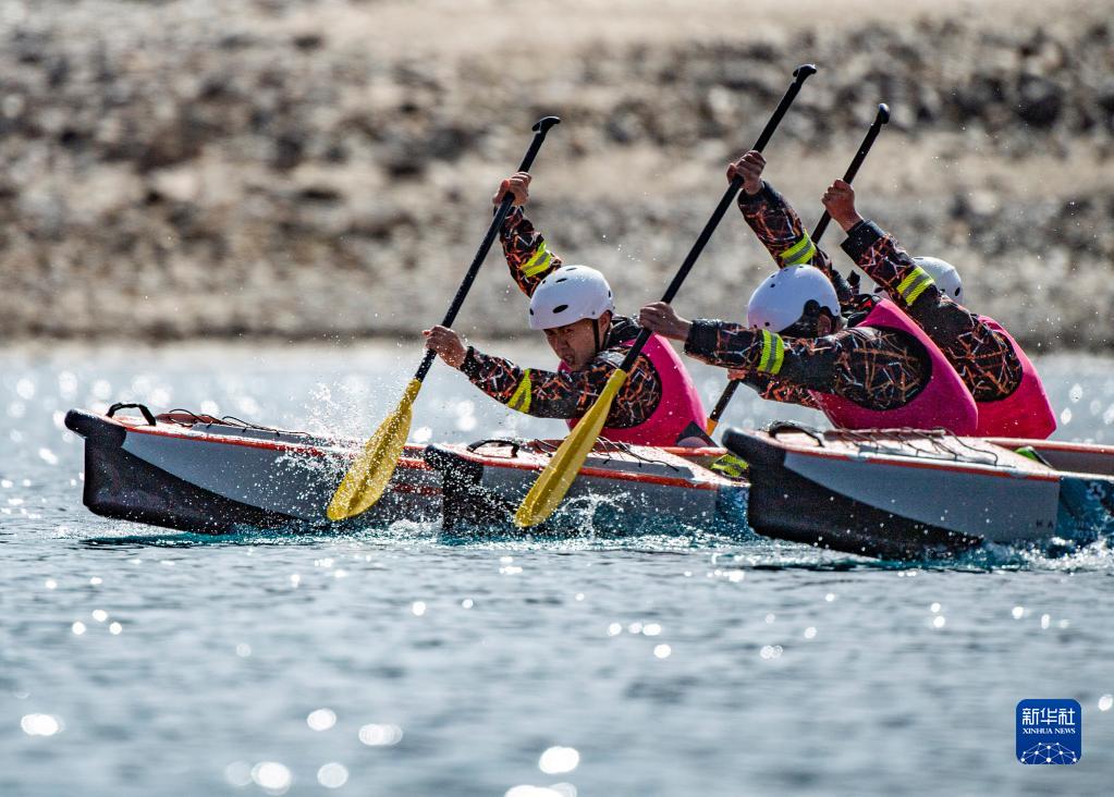4月15日,“水上花女子皮劃艇世界冠軍隊”選手在200米靜水漂流筏排位賽中,最終她們位列第七名。新華社記者 孫非 攝