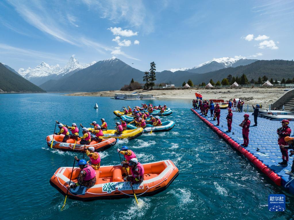 當日,2023年阿依舍·中國漂流聯(lián)賽(西藏工布江達縣站)在西藏林芝市巴松錯國家森林公園開賽。