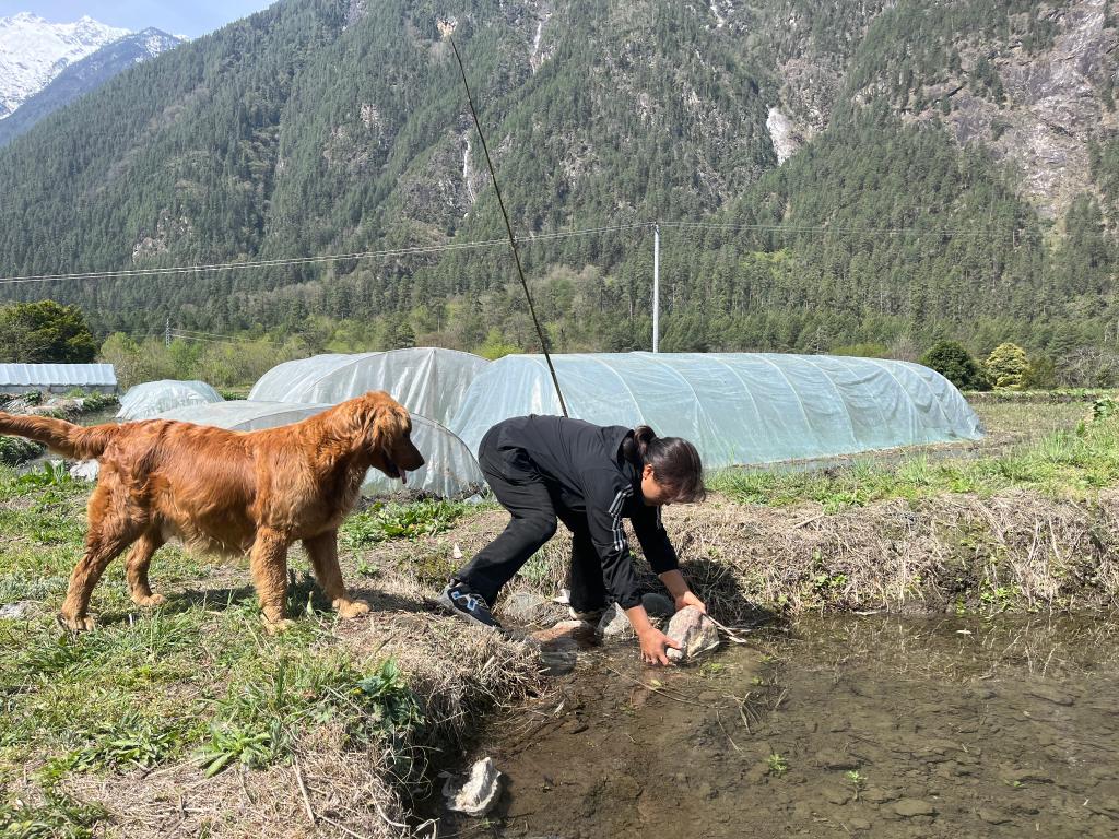 4月春風(fēng)和煦,32歲的珞巴族姑娘安陽麗,深一腳淺一腳地踩在水稻田里,熟練操作著旋耕機(jī)對(duì)自家7畝地進(jìn)行翻土。頭頂太陽,安陽麗皮膚曬得黝黑,汗珠順著臉頰不停往下流。