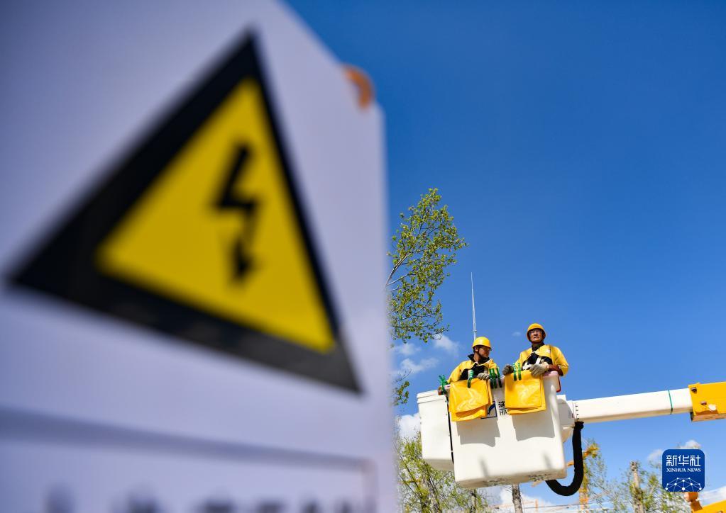 4月26日,扎西尼瑪(左)在進(jìn)行絕緣電阻檢測。新華社記者 劉洲鵬 攝