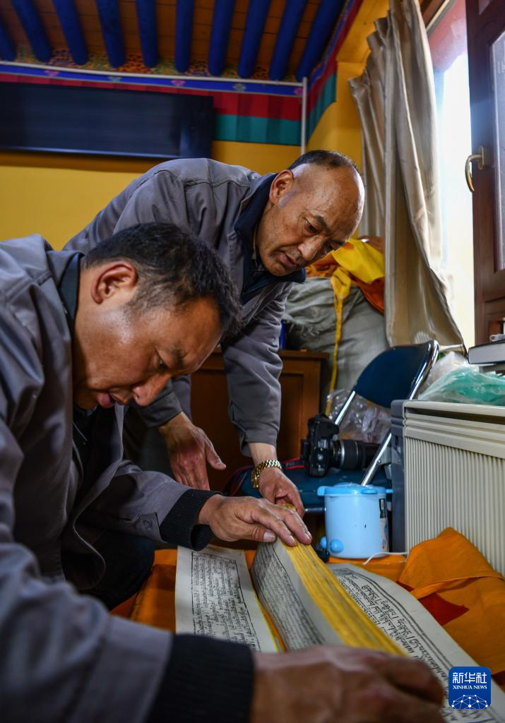 久米次成取出古籍,準(zhǔn)備進(jìn)行普查登記(4月19日攝)。新華社記者 晉美多吉 攝