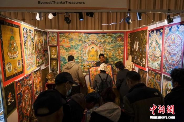 5月4日,西藏(拉薩)中外商品展銷會現(xiàn)場的唐卡展銷位。據西藏自治區(qū)外經貿協(xié)會工作人員介紹,展銷會從4月29日至5月4日舉行,共有印度、尼泊爾、巴基斯坦、伊朗、塔吉克斯坦、不丹及阿富汗7個國家的84名外籍人員攜本國特色產品參展。中新社記者 江飛波 攝