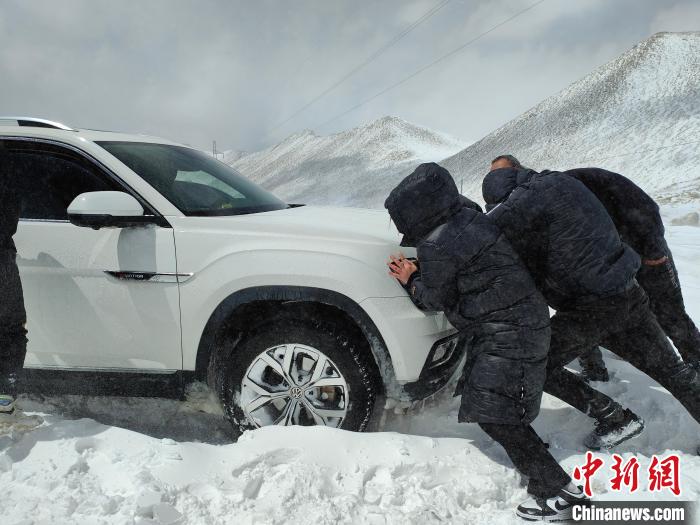 民警隨即打火發(fā)動(dòng)警車(chē),行至被困車(chē)輛前面,利用拖車(chē)?yán)K連接警車(chē)與被困車(chē)輛,其余救援人員雙手搭上車(chē)輛用力向前推,“一、二、三,加油!”“動(dòng)了,動(dòng)了,車(chē)子可以向前移動(dòng)了?!辩P除積雪、鋪撒砂石、推拉車(chē)輛……接下來(lái)救援人員用同樣的方法開(kāi)始拖出其余車(chē)輛,3個(gè)多小時(shí)后,5輛車(chē)、14名民眾全部脫離險(xiǎn)境。所有被困車(chē)輛和人員安全抵達(dá)楚魯松杰鄉(xiāng)。