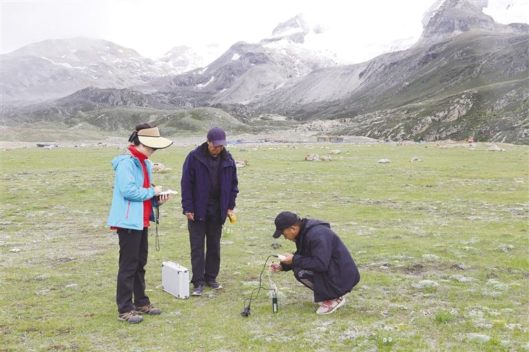 科研人員正在進行植被覆蓋度及土壤濕度觀測。圖由受訪者提供