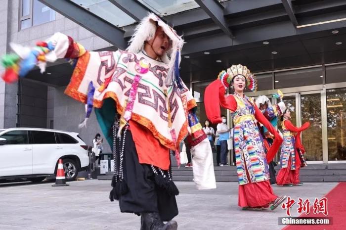 5月23日,“2023·中國西藏發(fā)展論壇”在北京舉行。會場外,活潑獨特的藏式迎賓舞蹈、展示西藏人文自然風(fēng)貌的圖片,已在論壇開幕前預(yù)熱起探討西藏新發(fā)展的氛圍。圖為藏式迎賓舞蹈。中新社記者 蔣啟明 攝