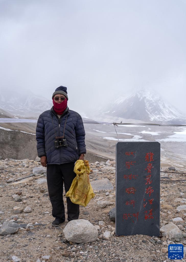 乃乃在用望遠鏡查看冰川是否有異樣(5月31日攝)。新華社記者 晉美多吉 攝