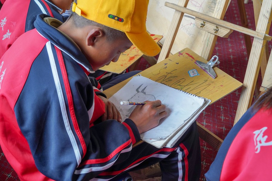 6月5日,扎西宗鄉(xiāng)完全小學的學生在上美術課。