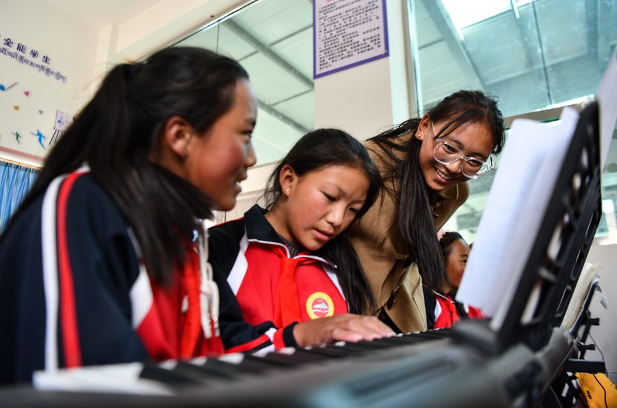 正在學習鋼琴的旦增吉宗對于上學有更深刻的認識,她的爺爺奶奶沒有上過學,一輩子從事農業(yè)生產;父親上過初中,母親是小學畢業(yè),他們經過培訓成了村里的鄉(xiāng)村醫(yī)生。“爸爸媽媽讓我好好學習,爭取考上大學,成為家里的第一個大學生。”旦增吉宗說。