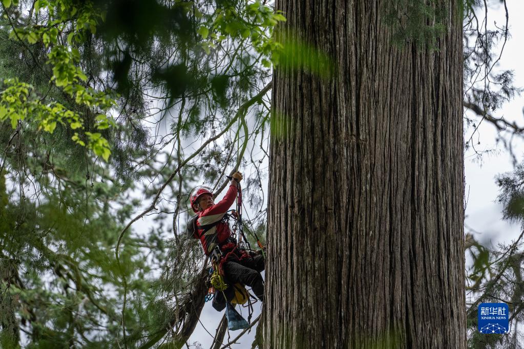 6月15日,攀樹專家劉團璽在攀爬亞洲第一高樹。新華社記者 費茂華 攝