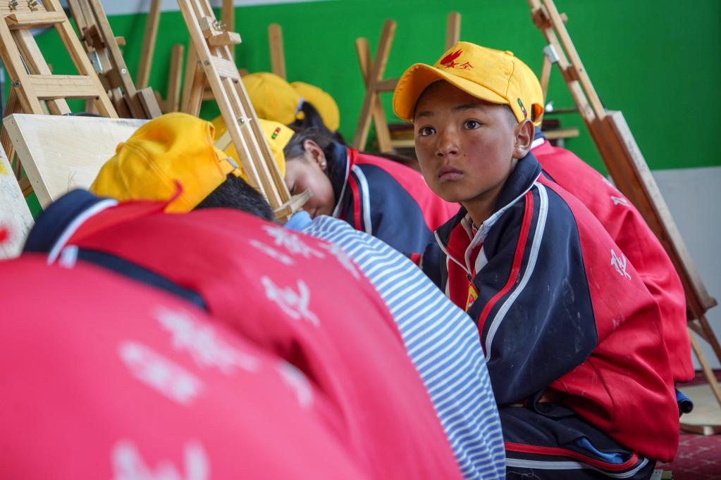 扎西宗鄉(xiāng)完全小學的學生在上美術(shù)課(6月5日攝)。