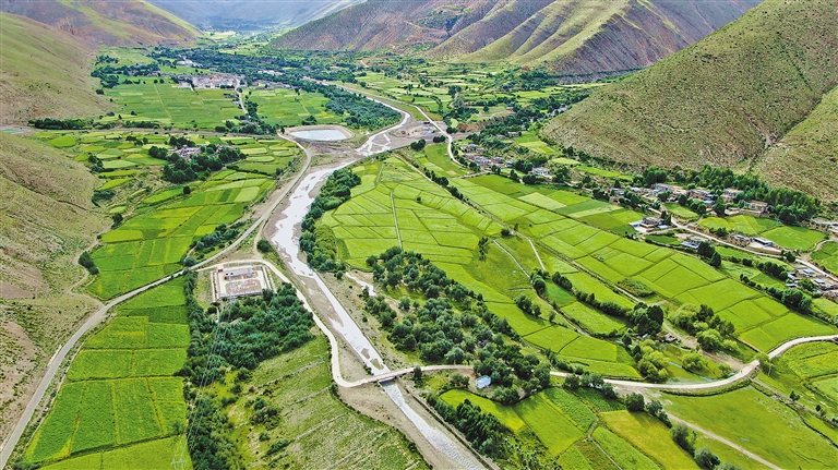 圖為瓊結縣加麻鄉(xiāng)縱橫交錯的農(nóng)村公路。記者 劉楓 攝