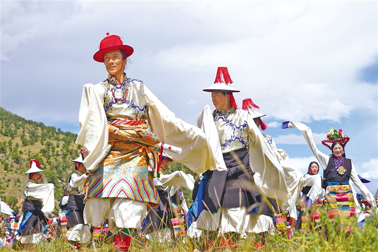 “小時候,我看見大人們在草地上跳‘熱振曲卓’,舞姿太漂亮了。我不想我的后代只能在書本里看到這個舞蹈,希望把它傳承下去。”56歲的宗巴為了恢復(fù)“熱振曲卓”表演,于2015年成立了林周“熱振曲卓”傳播有限公司,致力于該舞蹈的傳承保護。