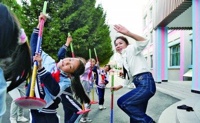 山南市第三小學的援藏教師甘夭娥帶領(lǐng)學生練習藏族傳統(tǒng)舞蹈“打阿嘎”。作為教育大省,湖南通過實施“山南湖南學校聯(lián)盟”工程,采取“一所學校包一個學科”的形式,把優(yōu)質(zhì)教育資源下沉到縣區(qū)和鄉(xiāng)村學校。攝影:辜鵬博(湖南日報攝影記者)