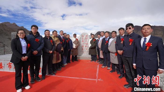 圖為那曲市委副書記、市長旦巴(圖左)和水利部水資源管理中心副處長張遠東一同為“長江第一滴水”揭碑。拉巴卓瑪攝