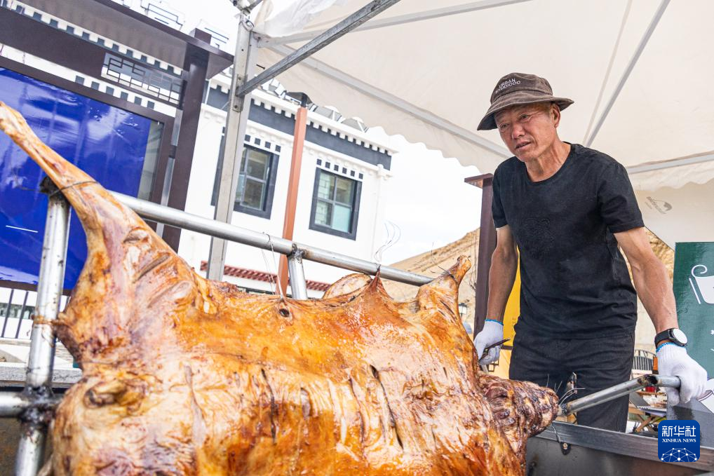 烤全羊制作中。新華社記者 丁增尼達(dá) 攝