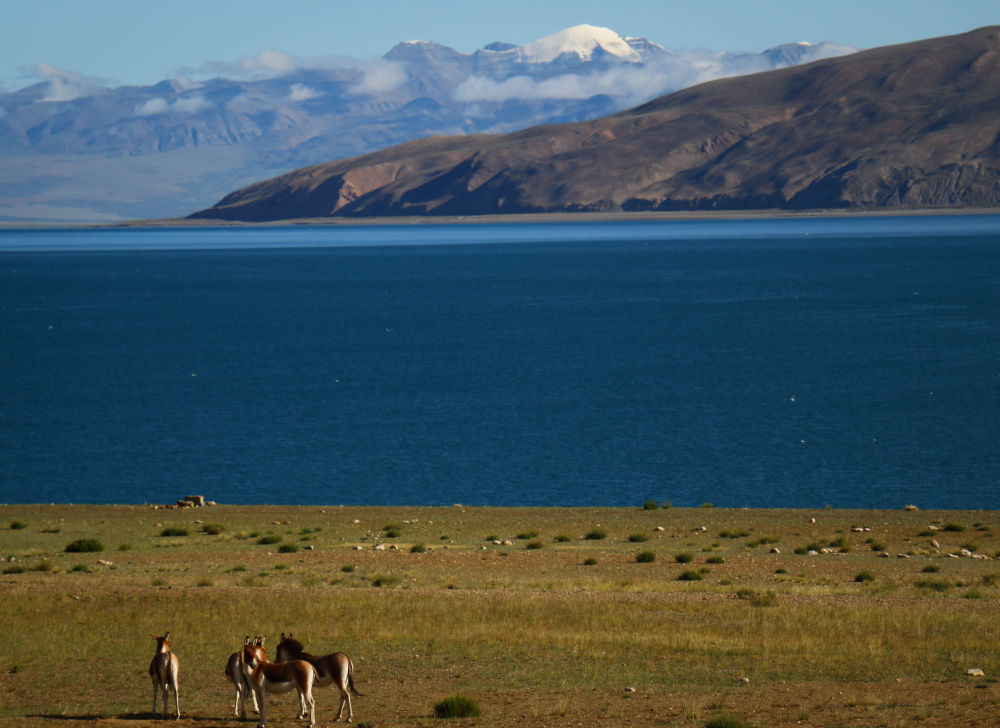 藏野驢在拉昂錯旁停留(8月13日攝)。新華社記者聶毅、曹檳攝影報道
