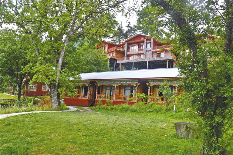 仁青客棧位于離波密縣城10公里處的古鄉(xiāng)巴卡村。穿過江上的石橋,走進(jìn)客棧簡(jiǎn)樸的大門,一棟棟樣式別致的建筑矗立于山坡之上,院中鮮花盛開,綠草茵茵。沿著臺(tái)階拾級(jí)而上,遠(yuǎn)處秀美的風(fēng)光一目了然。