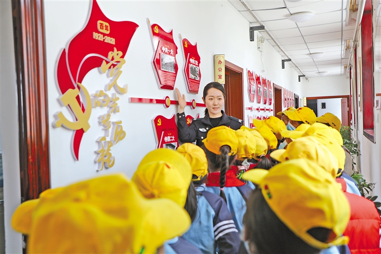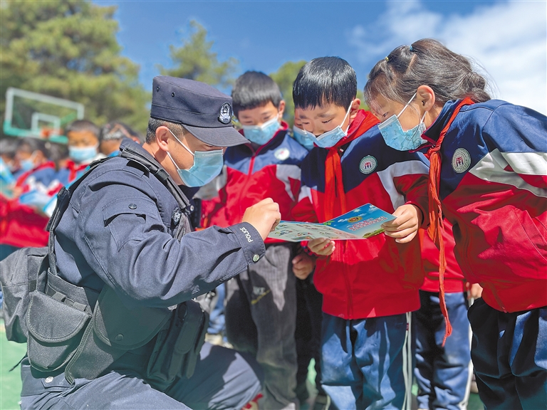 林芝邊境管理支隊(duì)南伊邊境派出所副所長趙軍為小學(xué)生開展安全宣傳,講解民族團(tuán)結(jié)相關(guān)政策。記者 張猛 攝