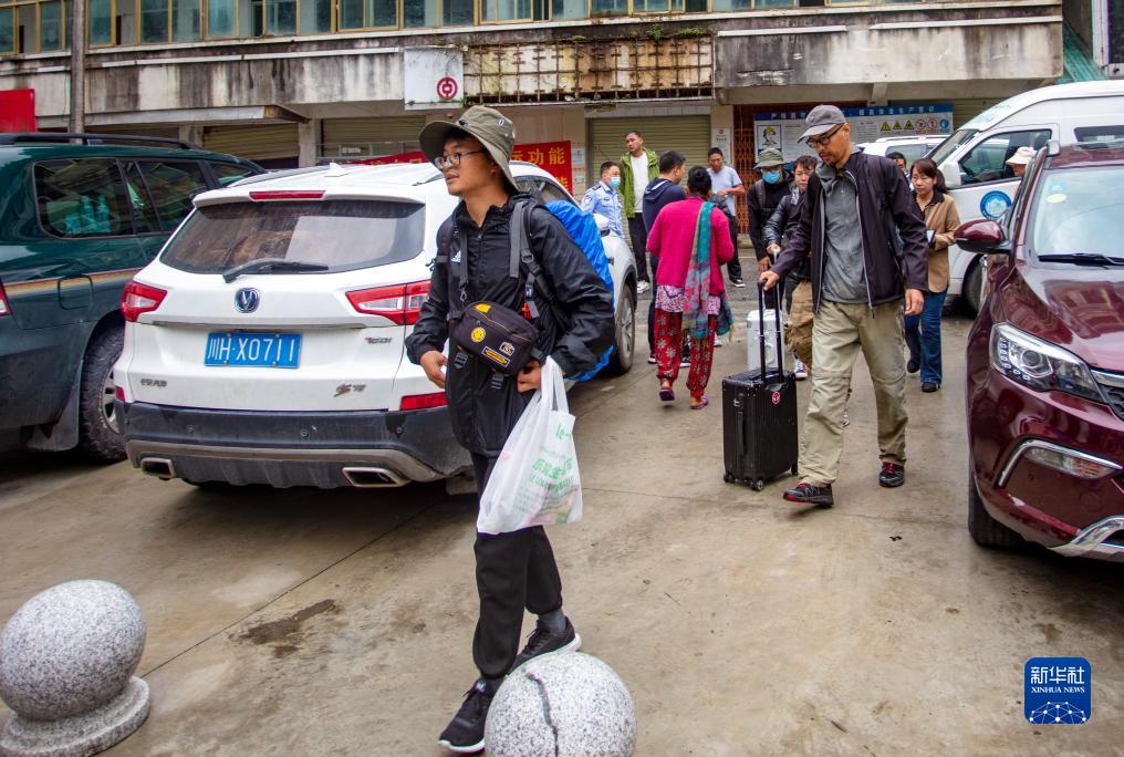 幾名游客準(zhǔn)備從樟木口岸出境到尼泊爾旅游(9月9日攝)。新華社記者 姜帆 攝