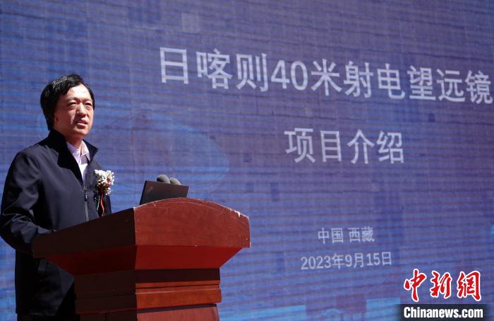 9月15日,中國科學(xué)院上海天文臺臺長沈志強(qiáng)在日喀則40米射電望遠(yuǎn)鏡項目啟動會上,介紹該項目相關(guān)情況。中新網(wǎng)記者 孫自法 攝