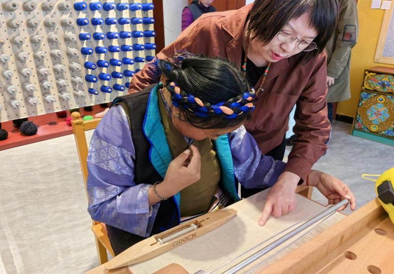 幾個月來,通過郭秀玲創(chuàng)建的上海工匠沙涓援藏氆氌工作室,帶動了本地藏族“阿佳”加入氆氌手工坊,包括江孜縣索蓋村次仁片多在內的殘障婦女在家實現(xiàn)就業(yè),并傳授她們最新織機技藝。西藏日喀則江孜縣商務局黨組書記、局長央吉介紹說,郭秀玲還將在江孜建立專業(yè)牧場,從羊絨到紡織一條龍,讓產業(yè)鏈得到延長。預計一年后,可以帶動江孜氆氌女匠人每人每年增收5萬元。