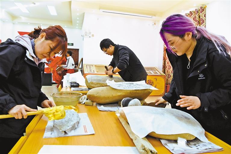 復(fù)旦大學(xué)圖書(shū)館中華古籍保護(hù)研究院師生在昌都市洛隆縣歷史文化陳列館內(nèi)拓印當(dāng)?shù)厥?。洛?攝