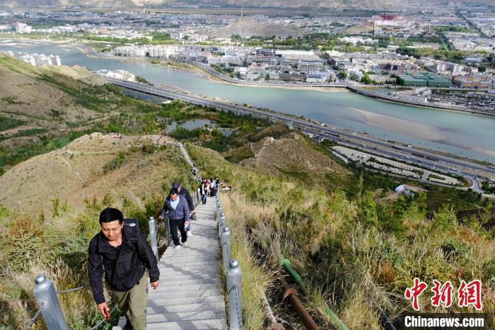 “山不見我、我自見山?!薄安槐馗嬖V我山有多高路有多遠(yuǎn),我會(huì)親自來看。”“長(zhǎng)路漫漫云燦燦,輕舟已過萬重山。”……9月28日,中新社記者在拉薩南山公園半山腰看到游客、市民的登山留言,現(xiàn)場(chǎng)也可以看到,長(zhǎng)長(zhǎng)的步道上滿是登山者,拾階往那山頂而去。