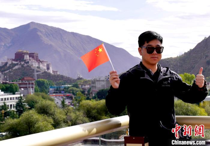 圖為游客在西藏博物館與遠(yuǎn)處布達拉宮合影留念。拉巴卓瑪 攝