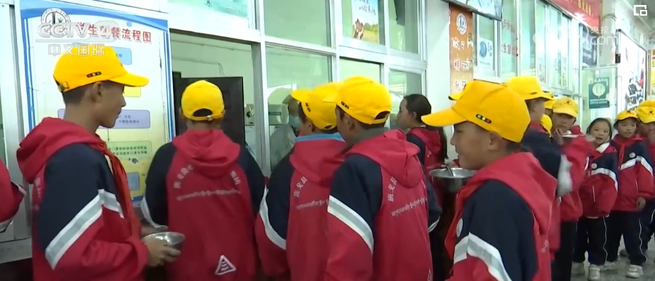 學(xué)校的學(xué)生絕大部分來自牧區(qū),寄宿制能夠保證更好的教學(xué)質(zhì)量,但并不強(qiáng)制。晚上下課后,離學(xué)校近的學(xué)生由家長(zhǎng)接走,格桑堅(jiān)才則和小伙伴去食堂吃晚飯。學(xué)校還配備生活老師,照顧學(xué)生的日常起居、提供日用品。這些費(fèi)用都由中國(guó)從1985年開始,對(duì)西藏自治區(qū)實(shí)施的教育“三包”政策負(fù)擔(dān)。包吃、包住、包學(xué)習(xí)費(fèi)用,學(xué)生家庭不用出一分錢。2023年這一政策的補(bǔ)助金額又再次提高,達(dá)到年生均4000—5000元。這所學(xué)校的升學(xué)率能達(dá)到100%。