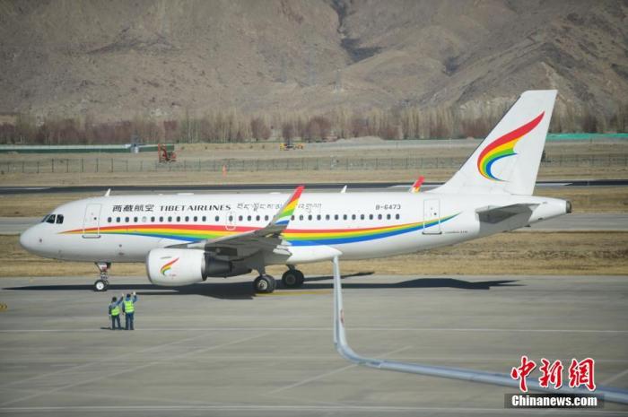 1月7日,一架西藏航空客機(jī)在拉薩貢嘎機(jī)場準(zhǔn)備起飛。當(dāng)日是2023年春運首日,西藏拉薩貢嘎機(jī)場旅客出行井然有序。(中新社記者 貢嘎來松攝)
