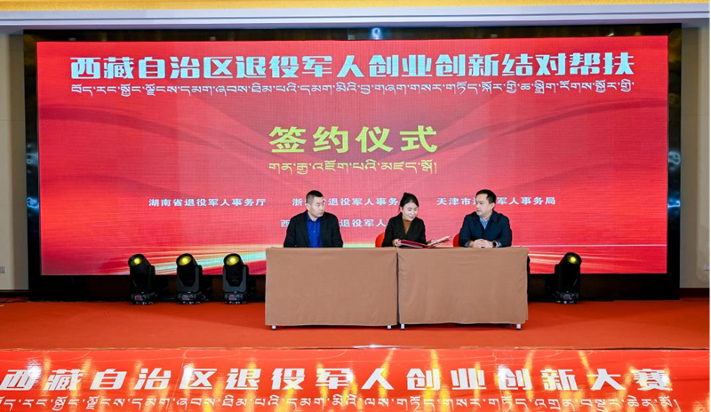 儀式上,西藏自治區(qū)退役軍人事務(wù)廳分別與湖南省退役軍人事務(wù)廳、浙江省退役軍人事務(wù)廳(線上同步簽約)、天津市退役軍人事務(wù)局簽署了結(jié)對(duì)幫扶協(xié)議,為助力西藏退役軍人創(chuàng)業(yè)創(chuàng)新,更好地服務(wù)經(jīng)濟(jì)社會(huì)發(fā)展奠定了基礎(chǔ)。