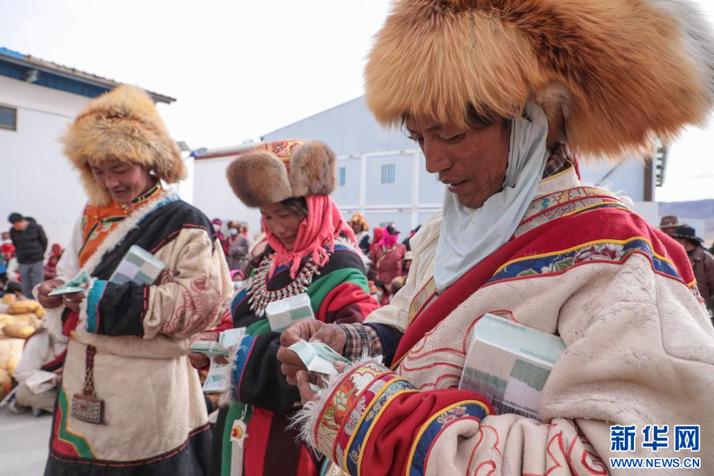 合作社社員領到現(xiàn)金分紅(11月28日攝)。新華社發(fā)(索朗仁青 攝)