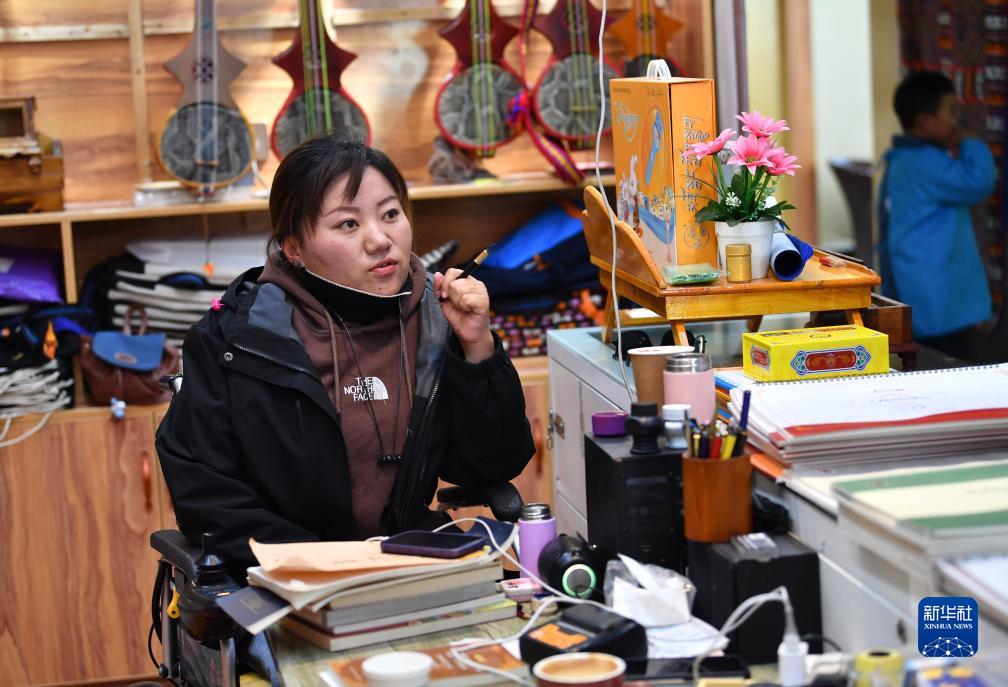 29歲的拉薩姑娘卓嘎因小兒麻痹落下殘疾,她在覺列的公司里學(xué)習(xí)了藏文書法,還成為拉薩八廓商城一個(gè)藏文書法和扎念琴體驗(yàn)班的負(fù)責(zé)人,最多的時(shí)候要為150名孩子授課。現(xiàn)在她每月稅前收入有大約9000元。