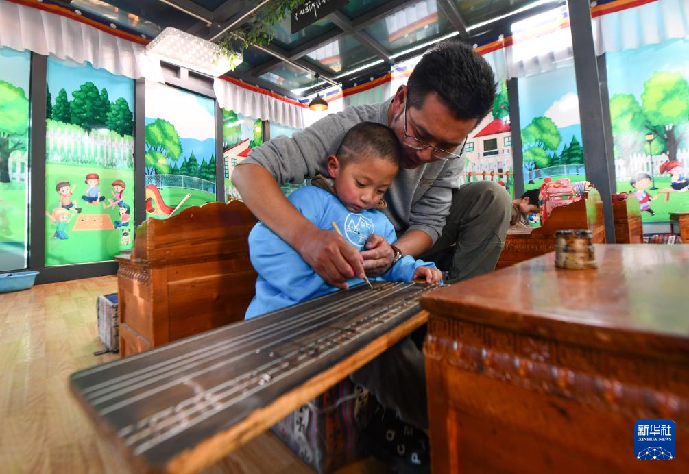 在拉薩的一家藏文書法興趣班里,老師指導學生使用“墻星”練習藏文書法(12月2日攝)。新華社記者 春拉 攝