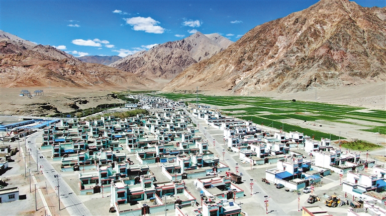 在黨和國(guó)家的關(guān)懷下,如今的日土縣多瑪鄉(xiāng)烏江村成為了邊境小康村,全村群眾通過(guò)發(fā)展合作社、苗圃等產(chǎn)業(yè),年人均收入達(dá)到了2萬(wàn)余元,過(guò)上了富足祥和的生活。圖為鳥瞰烏江村(7月23日攝,無(wú)人機(jī)照片)。記者 洛桑旦增 攝