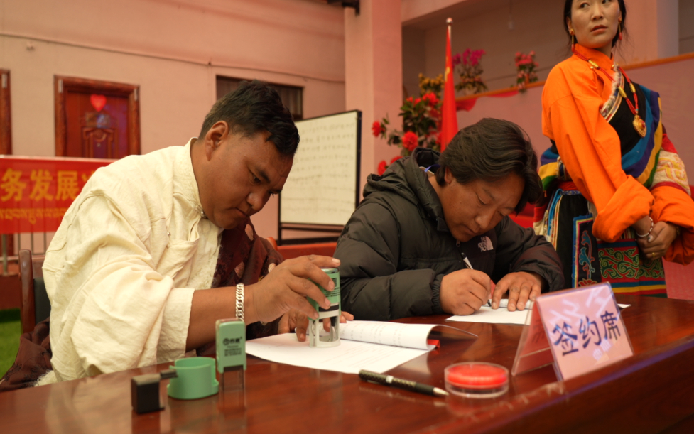 那曲市色尼區(qū)古露鎮(zhèn)央礱汽車(chē)租賃公司負(fù)責(zé)人與駕駛員簽訂安全協(xié)議。
