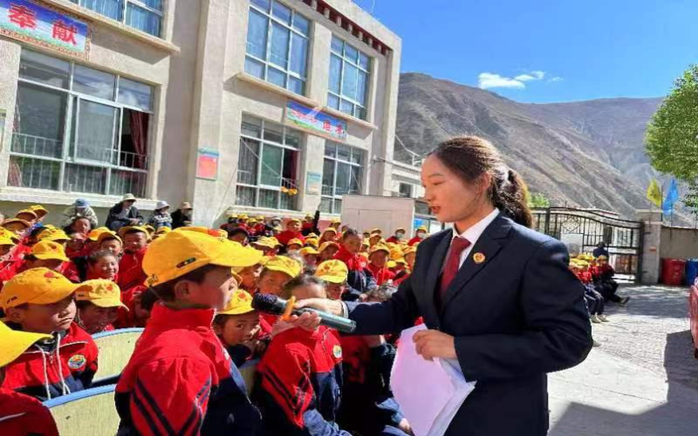 2023年“六一”國際兒童節(jié),尼木縣人民檢察院黨組書記、檢察長(zhǎng)德吉桑姆帶領(lǐng)“文香·藍(lán)”法律宣傳服務(wù)隊(duì)前往帕古鄉(xiāng)完小開展法治進(jìn)校園活動(dòng)。