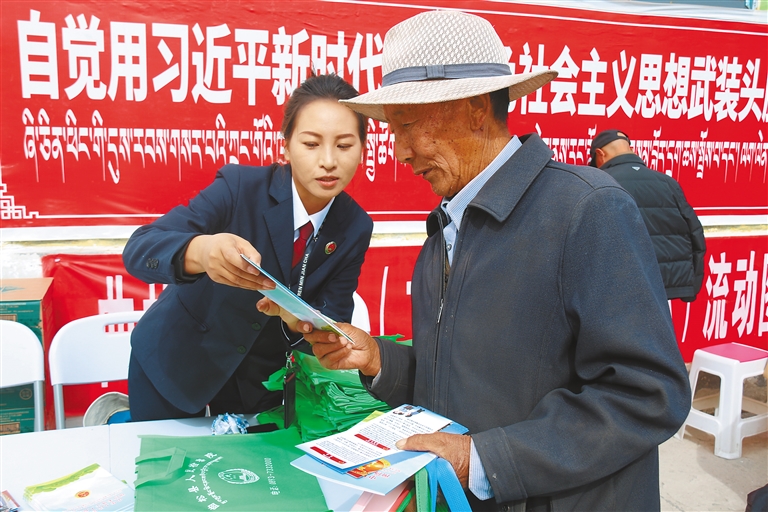日前,曲松縣新時代文明實踐中心聯(lián)合曲松鎮(zhèn)新時代文明實踐所、瓊嘎村新時代文明實踐站開展“移風易俗潤民心 鄉(xiāng)風文明促振興”主題宣傳活動。圖為工作人員向群眾講解宣傳資料。
