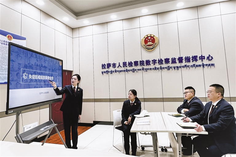 拉薩市人民檢察院檢察官通過(guò)數(shù)字檢察監(jiān)督平臺(tái)對(duì)失信懲戒不當(dāng)線索進(jìn)行人工研判。