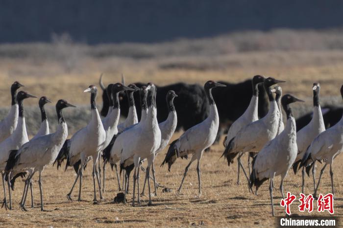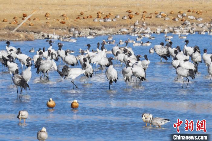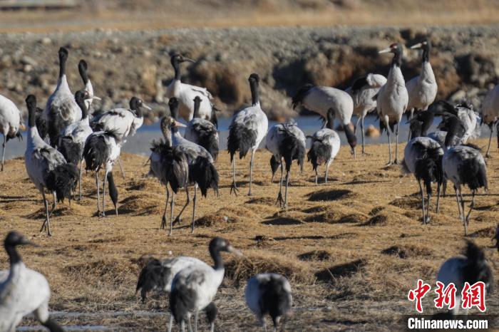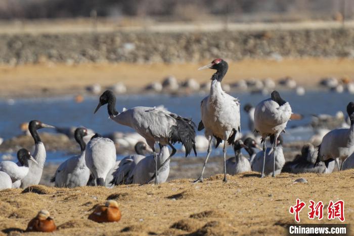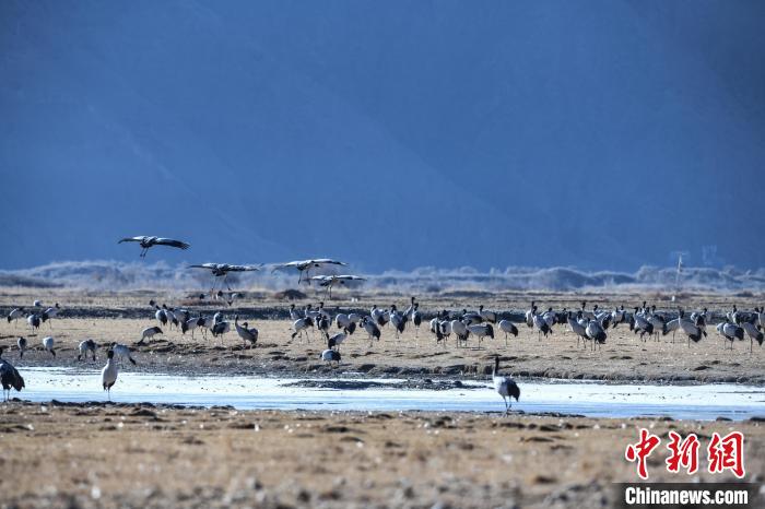 1月10日,西藏雅魯藏布江中游河谷黑頸鶴國(guó)家級(jí)自然保護(hù)區(qū)日喀則片區(qū)拉孜縣曲瑪鄉(xiāng)境內(nèi),大量越冬的黑頸鶴翩翩起舞,在濕地和農(nóng)田間覓食、嬉戲。近年來,隨著國(guó)家加大青藏高原生態(tài)保護(hù)力度,西藏多措并舉實(shí)施生態(tài)建設(shè),廣大農(nóng)牧民民眾保護(hù)野生動(dòng)物的意識(shí)不斷提升,黑頸鶴及其棲息地得到了較好的保護(hù),黑頸鶴數(shù)量逐年遞增。據(jù)悉,每年11月至次年3月,日喀則市拉孜縣、謝通門縣、桑珠孜區(qū)等地都會(huì)有黑頸鶴在此棲息過冬,最高數(shù)量達(dá)到8000只左右。