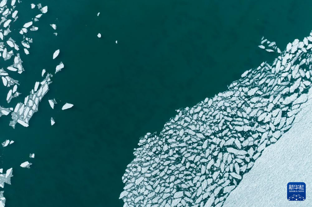 瑪旁雍錯(cuò)湖面上的冰堆積在一起,呈現(xiàn)出各式各樣的造型(1月29日攝,無人機(jī)照片)。新華社發(fā)(旦增努布攝)