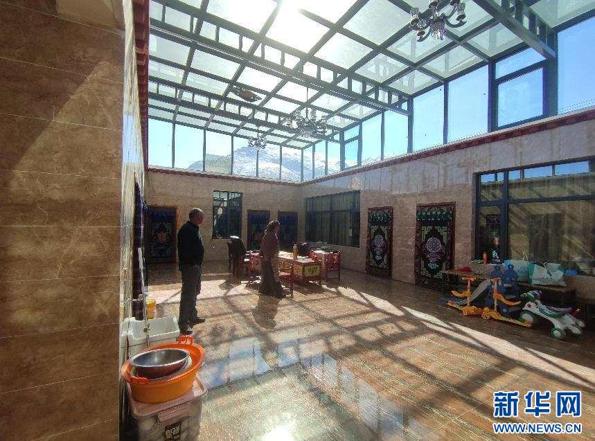 村民貢嘎是克日村第二批“美麗鄉(xiāng)村·幸福家園”建設(shè)行動計劃的參與者,翻新房子70%的費(fèi)用由當(dāng)?shù)卣a(bǔ)貼,自己只需支付30%,如今房屋已改造完畢,一家子正式入住。孫子們在光潔的地面玩耍,和煦的陽光從屋頂?shù)年柟馀镎者M(jìn)客廳,溫暖了整個冬天。