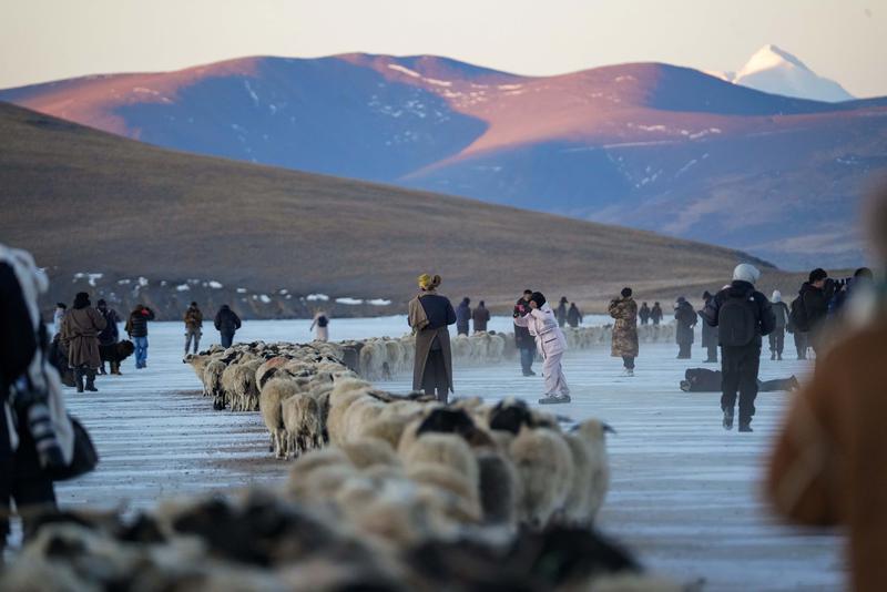年復(fù)一年,驚艷又震撼的“冰上趕羊”盛宴,在普莫雍措已上演了千年。這一獨(dú)特的自然人文景觀構(gòu)成了冬日里絕美的風(fēng)景,也吸引著眾多游客前來(lái)打卡。