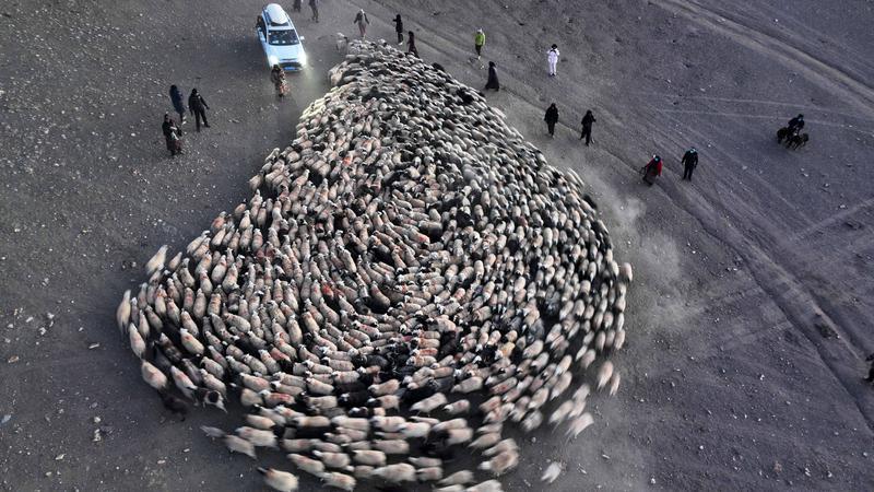 “每年趕羊前10天,村里家家戶戶都會(huì)開始準(zhǔn)備爐灰,爐灰是用來(lái)撒在冰面上防止羊群摔倒?!蓖颜f(shuō)。雖然提前撒好了防止羊群打滑的爐灰,但還是會(huì)有頻繁打滑摔跟頭的羊,此時(shí)牧羊人就會(huì)扶它們起來(lái),或背或抱,把它們送到目的地。