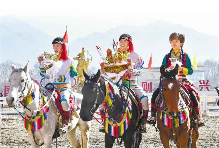 2月12日藏歷新年初三,主題為“體育大拜年,健康迎新春”的民族傳統(tǒng)馬術(shù)表演暨民族賽馬活動(dòng)在拉薩賽馬場舉行。