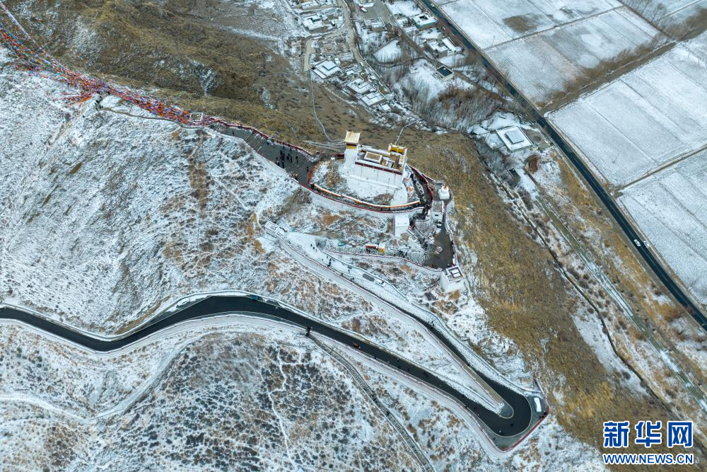 2月15日拍攝的雪后雍布拉康和山腳下的村莊(無人機(jī)照片)。新華網(wǎng) 旦增努布 攝